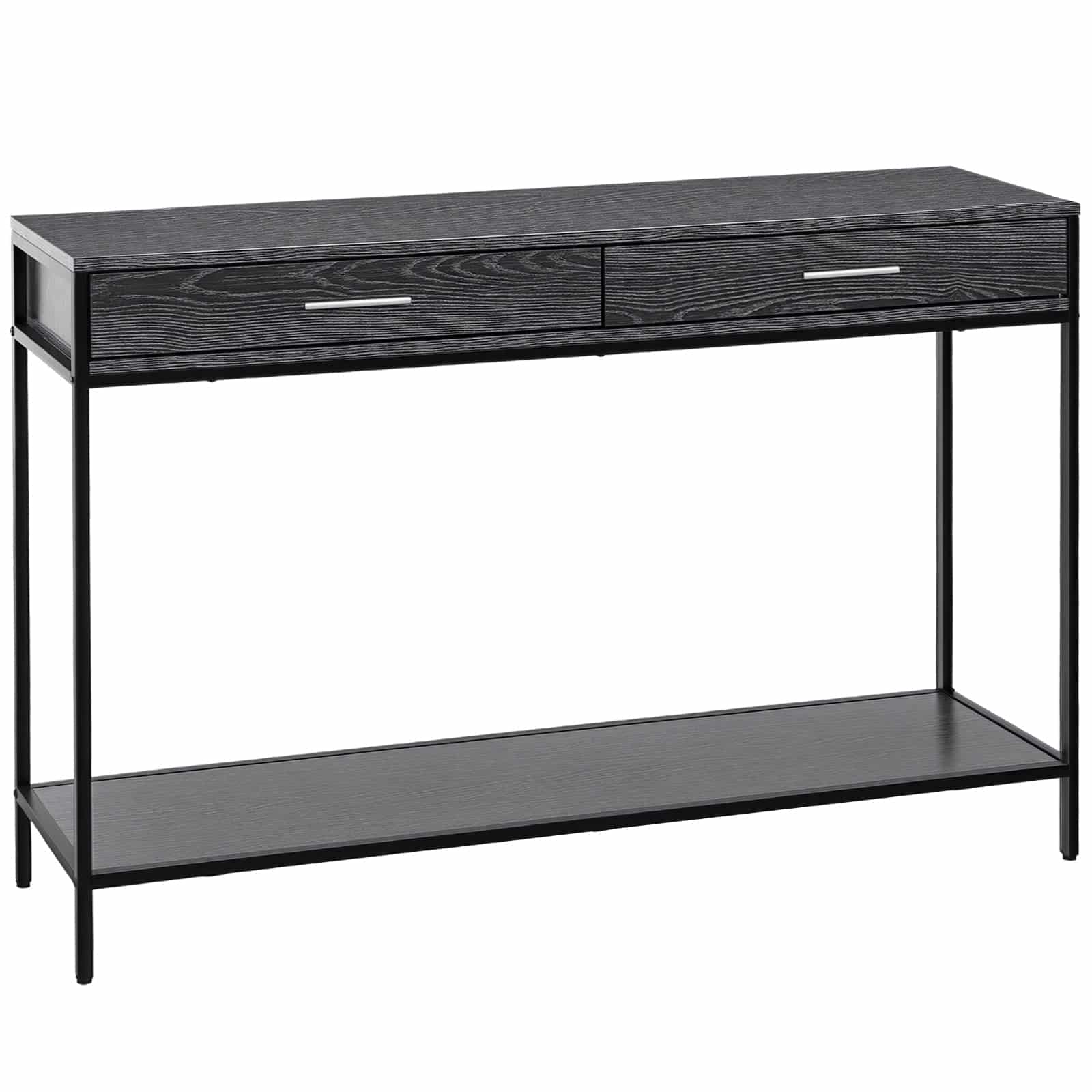 Oplev det perfekte konsolbord, der kombinerer stil og funktionalitet til dit hjem. Med to skuffer og en robust hylde er dette møbel ideelt til opbevaring af nøgler, sko og paraplyer. Den holdbare overflade gør rengøringen til en leg, og det enkle design p